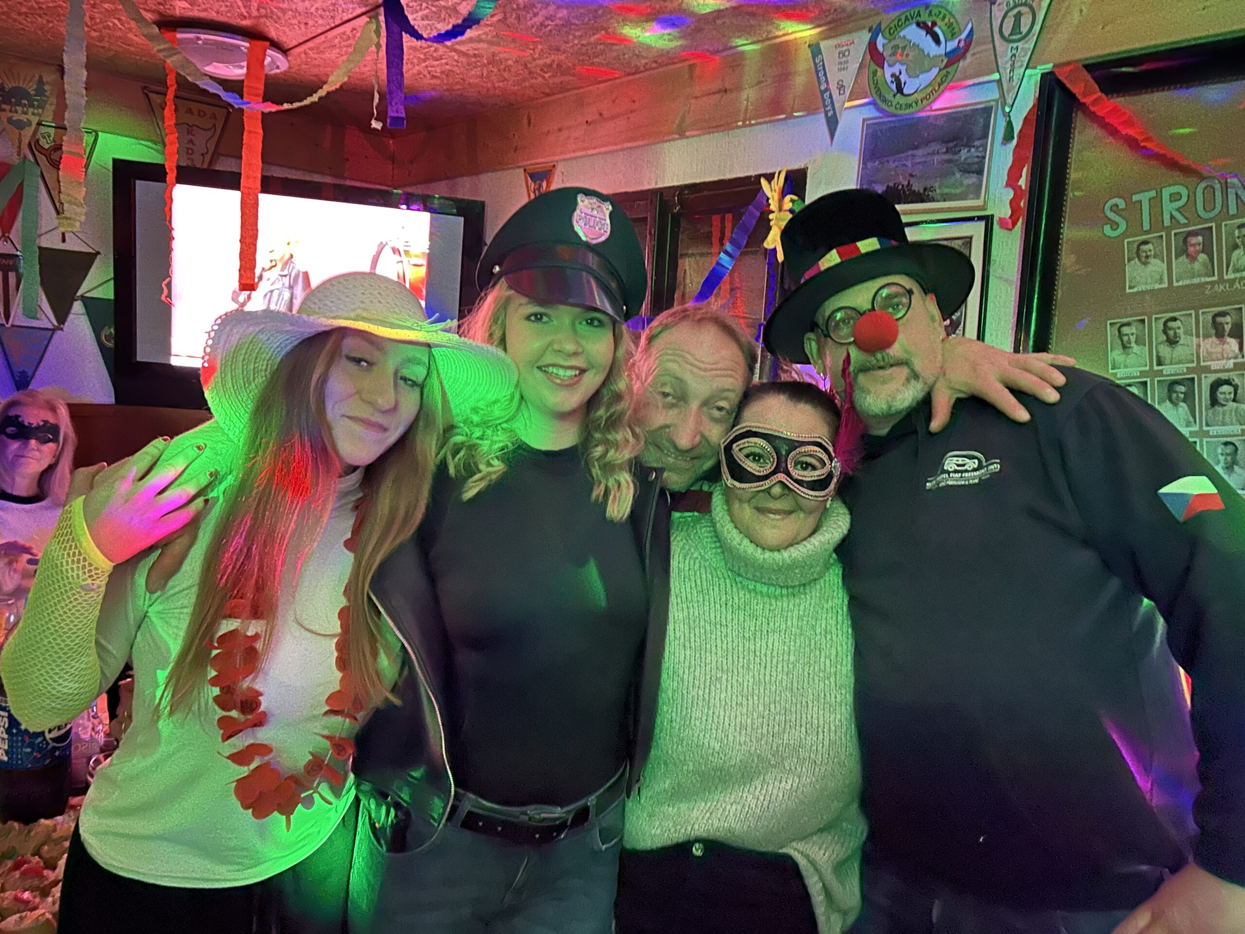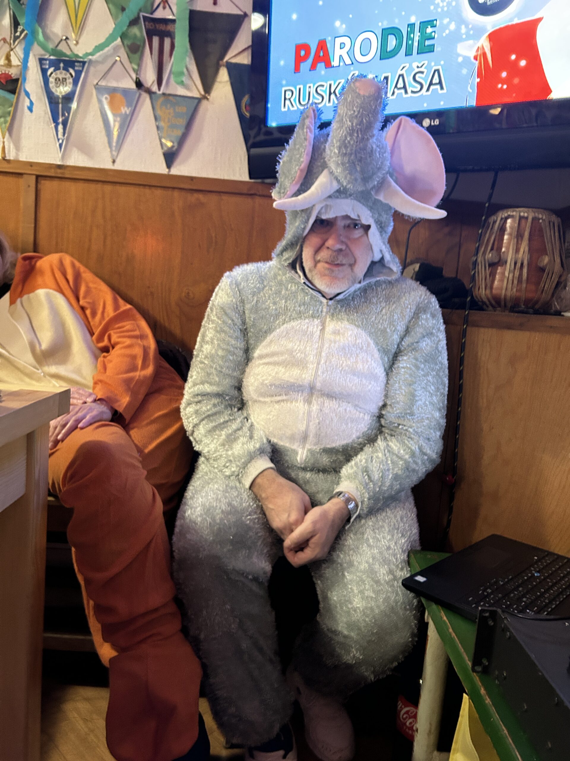 Jako každý rok jsme si vyšli na odpolední procházku k obrázku. Bylo opravdu mrazivé odpoledne. Takže po náročném výstupu bodl pánáček ořechovice. Večer jsme to rozjeli v boudě. Udělali jsme si takový maškarní bál a přivítali jsme Nový rok v maskách.